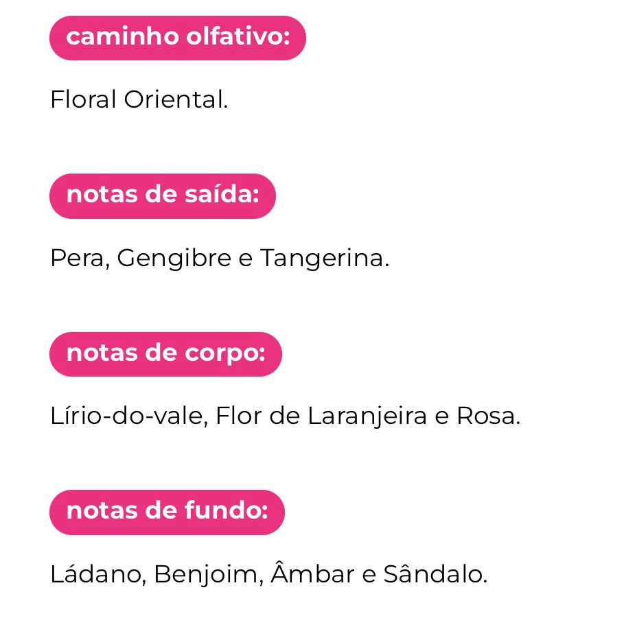 O Body Splash Wepink Feive Celestial foi criado para mulheres que expressam elegância em cada detalhe e fazem da própria presença um símbolo de estilo. Sua fragrância Floral Oriental se abre com notas frescas e vibrantes de pera, gengibre e tangerina, despertando os sentidos logo no primeiro contato com a pele. No coração, flores delicadas como lírio-do-vale, flor de laranjeira e rosa revelam uma feminilidade sofisticada e cheia de personalidade.