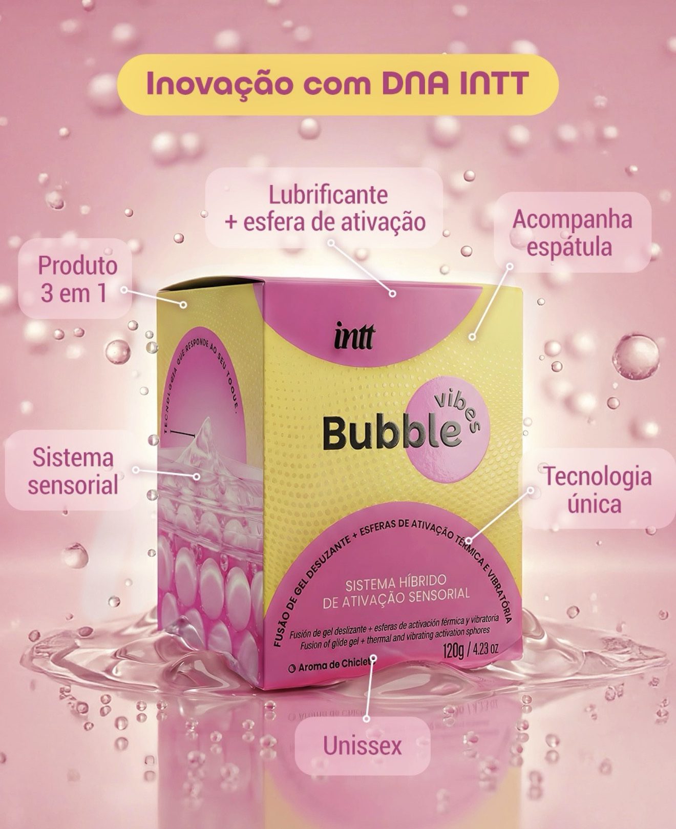 Indicado para todos os públicos, o INTT Bubble Vibes é perfeito para quem busca inovar, intensificar sensações e elevar a experiência íntima a um novo nível.