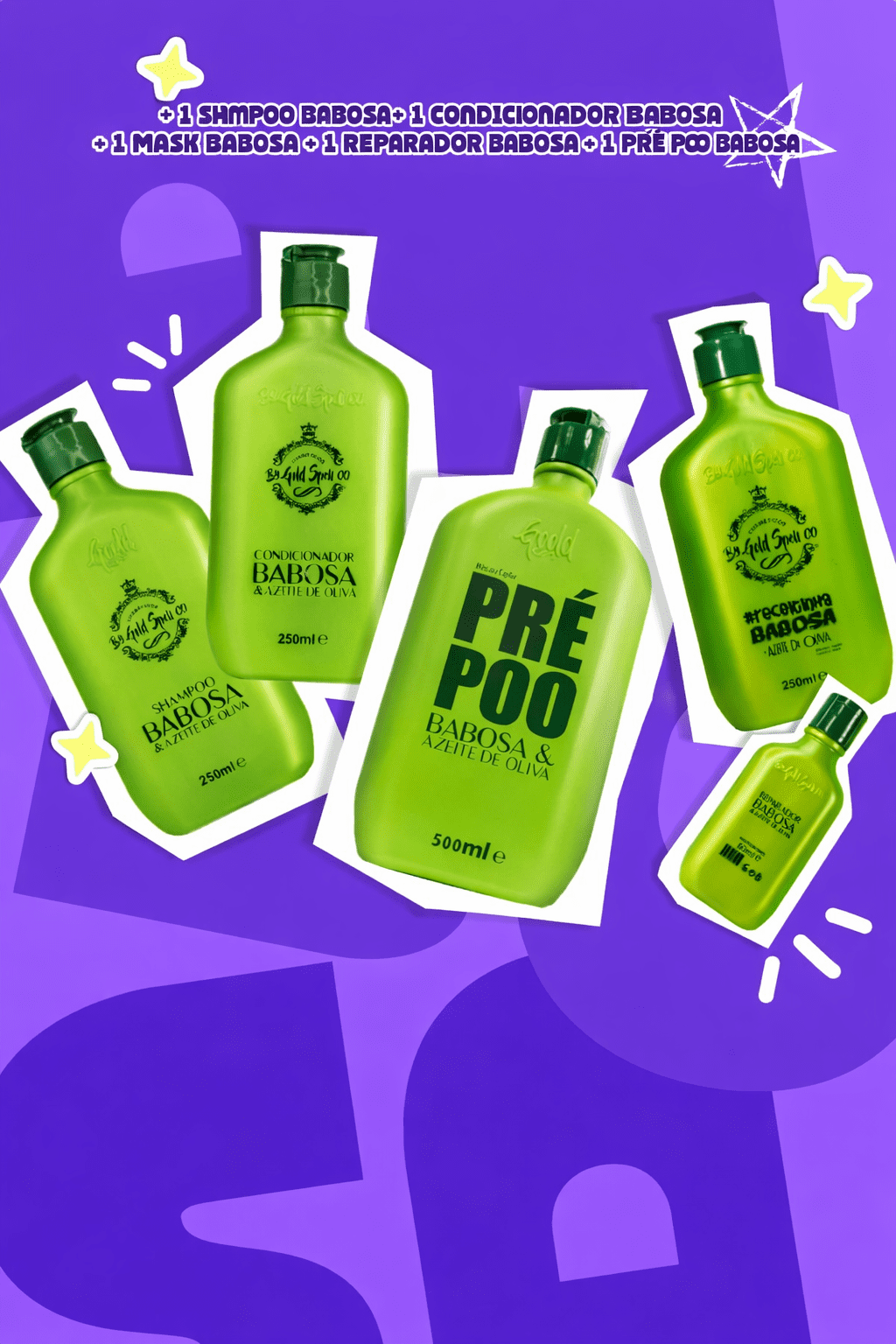 O Kit Babosa & Azeite de Oliva Gold Spell é um tratamento completo desenvolvido para hidratar, nutrir e fortalecer os cabelos, proporcionando fios mais saudáveis, macios e com brilho intenso.
