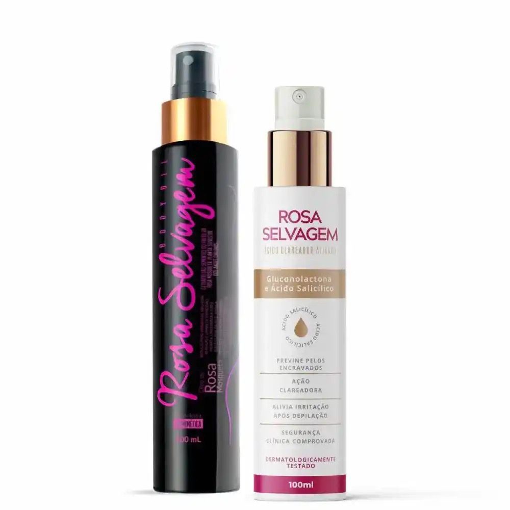 Fórmulas Suaves e Seguras: Valorizamos sua saúde e bem-estar. Priorizamos a segurança e principalmente a eficácia em todas nossas formulações. Se surpreenda com o ácido. Óleo Corporal Rosa Selvagem Clareador, contém o óleo extraído das sementes do fruto da Rosa Mosqueta, planta silvestre dos Andes Chilenos, era utilizado pelos índios para cicatrização e hidratação da pele. Esse óleo contém altos níveis de ácidos graxos poliinsaturados, linoleico, ácido oleico e linolênico, e esta riqueza em ácidos graxos essenciais confere um poder de regeneração dos tecidos da pele e crescimento celular. O óleo corporal Rosa Selvagem contém antioxidantes para pele e é rico em vitaminas A, B1, B2, E e Ke minerais como potássio, cálcio, sódio, ferro e magnésio. Possui tecnologia Biomimética que garante a eficácia de reposição dos ingredientes biologicamente idênticos aos componentes da pele. Age no clareamento e uniformização da coloração da pele, garantindo uma hidratação completa, transformando a sua autoestima. Além de clarear, contém fórmula exclusiva que age amenizando os relevos indesejados que surgem com as manchas, devido sua alta concentração de Rosa Mosqueta. Atua no alívio das irritações, devido ao óleo de Amêndoas presente na sua fórmula e gera maior conforto durante o tratamento.
