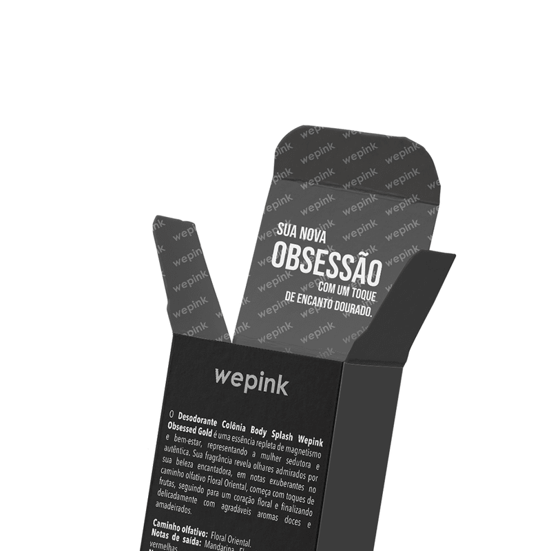 Uma essência luxuosa, repleta de magnetismo e bem-estar, o Body Splash Obsessed Gold Desodorante Colônia representa a mulher sedutora e autêntica, que atrai olhares admirados pela beleza encantadora, sedutora e elegante, que fica na memória com muito charme e sofisticação.