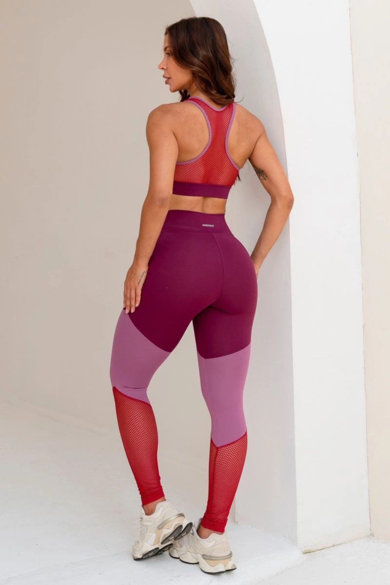 A calça de cós alto possui escrita Garotafit refletiva na parte de trás da cintura, recortes em diagonal no meio da perna em magenta claro e ao final da perna em tela na cor vinho. Composição: 85% Poliamida e 15% Elastano, proporcionando elasticidade e conforto incomparáveis.
