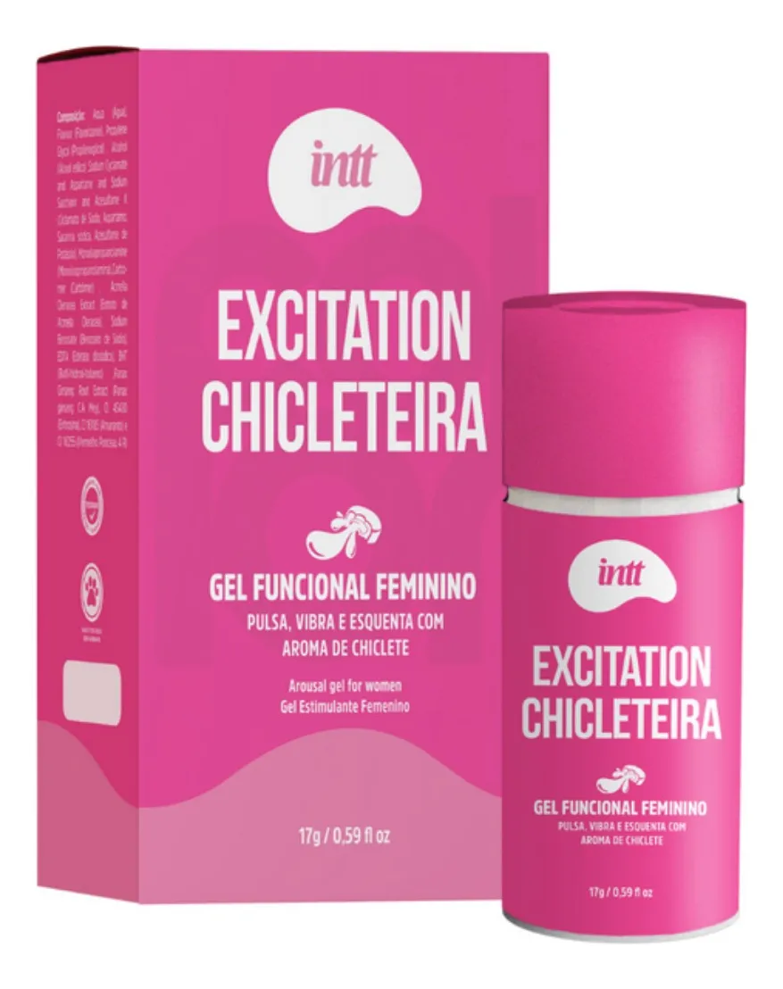 Modo de uso: Aplicar o gel excitante feminino Excitation Chicleteira sobre a pele com a ponta dos dedos, massageando até desaparecer.