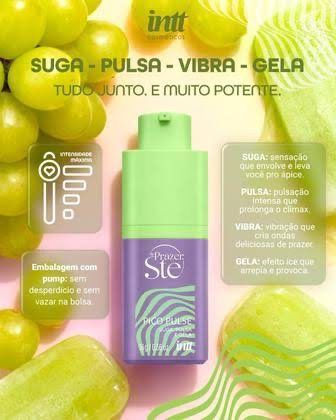 Gel excitante e sensibilizante unissex desenvolvido para estimular intensamente a região íntima, proporcionando sensações combinadas de sucção (suga), pulsação (pulsa), vibração (vibra) e refrescância (gela). Ideal para uso individual ou a dois, intensificando o prazer e a sensibilidade.