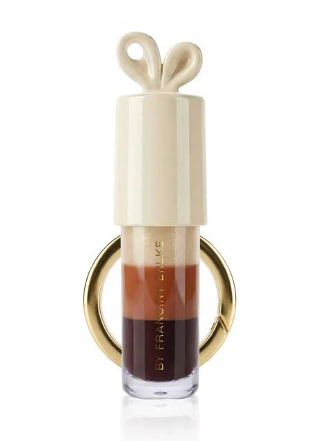 As três camadas criam um efeito visual único na embalagem e se misturam suavemente na aplicação, revelando um tom sofisticado, com brilho espelhado e acabamento que valoriza os lábios.