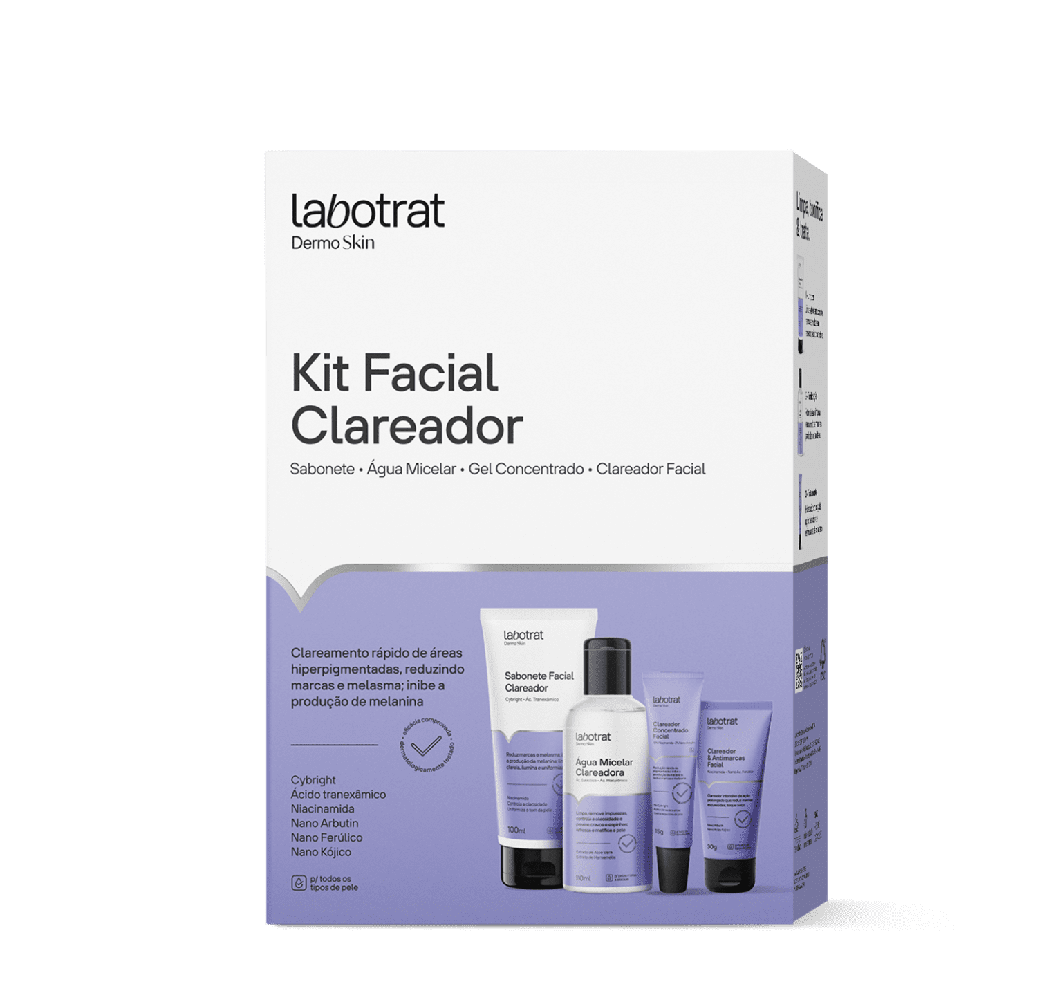 O Kit Facial Clareador Labotrat foi desenvolvido com ativos inteligentes que atuam na redução de manchas, controle da pigmentação e uniformização do tom da pele.