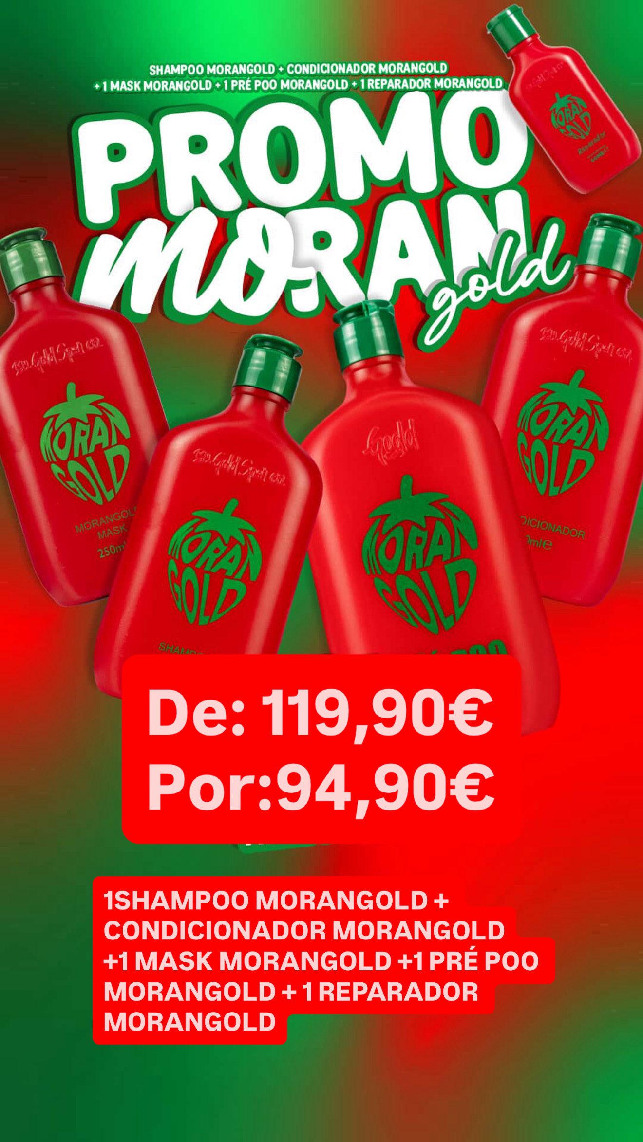 O Kit Morangold é um tratamento capilar completo desenvolvido para promover limpeza, hidratação, nutrição e finalização dos fios. Composto por cinco produtos essenciais, o kit atua de forma integrada, auxiliando na saúde da fibra capilar, no controle do frizz e na melhora da maciez, brilho e alinhamento dos cabelos.