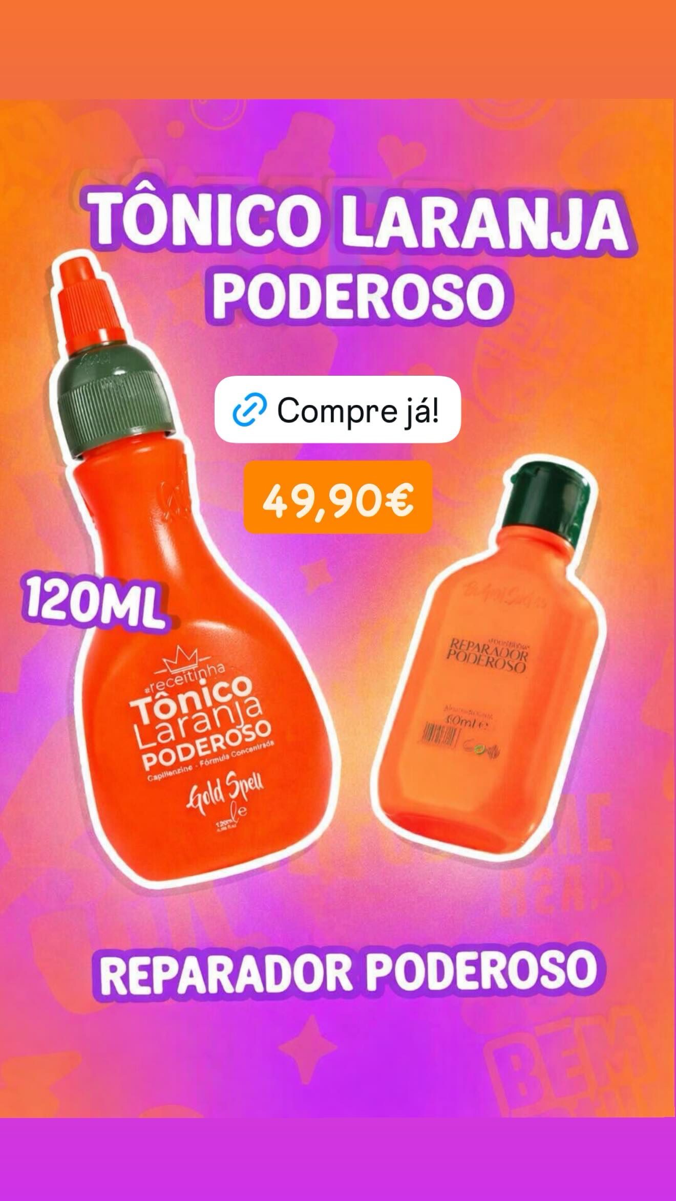 O Tônico Laranja Poderoso é indicado para estimular o crescimento capilar, fortalecer os fios desde a raiz e auxiliar na redução da queda. Atua diretamente no couro cabeludo, melhorando a saúde capilar e favorecendo o desenvolvimento de fios mais resistentes.
