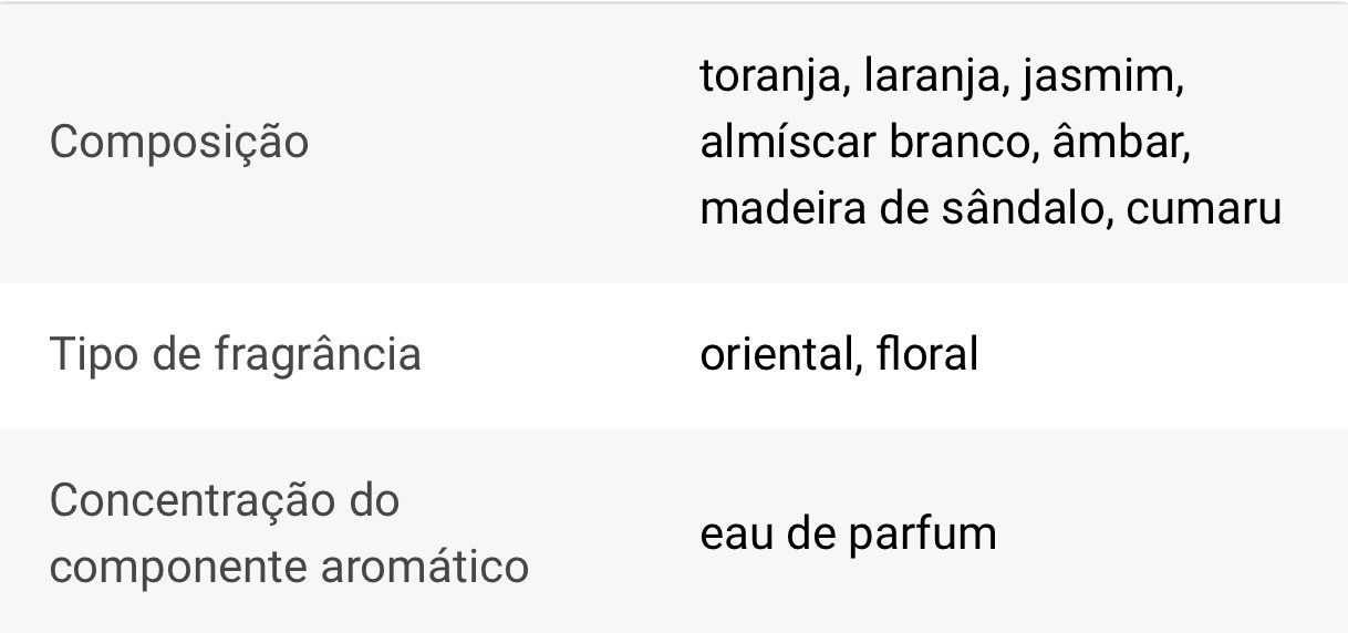 Composição da fragrância: