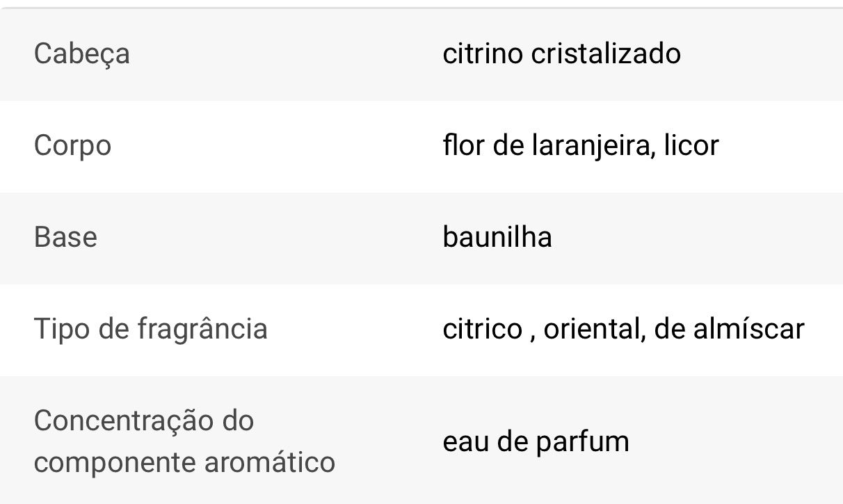 A abertura da fragrância pertence a uma nota fresca e delicada de bolo de limão. De seguida, passa para um tenro neroli, cuja delicada elegância floral acrescenta um toque de sofisticação à fragrância. Por fim, surge uma baunilha quente e cremosa, que suaviza toda a composição e garante uma impressão sensual e duradoura.