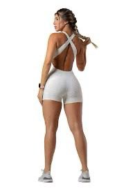 Sua modelagem anatômica com compressão estratégica realça as curvas, oferecendo sustentação e efeito modelador. O design com costas abertas e alças cruzadas agrega sofisticação e modernidade, além de favorecer a ventilação. O acabamento texturizado confere um visual premium e diferenciado.