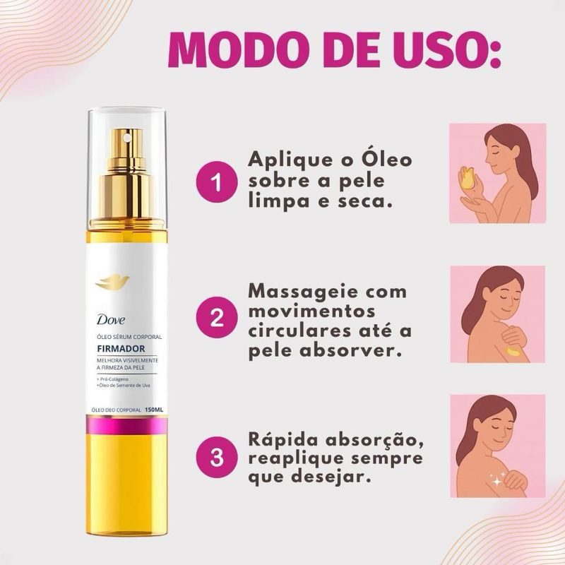 Óleo sérum corporal desenvolvido para hidratar intensamente e melhorar a firmeza e elasticidade da pele. Ajuda a deixar a pele mais luminosa, macia e com aparência mais firme, promovendo efeito glow natural sem sensação oleosa. Indicado para quem busca hidratação profunda aliada ao cuidado firmador diário.