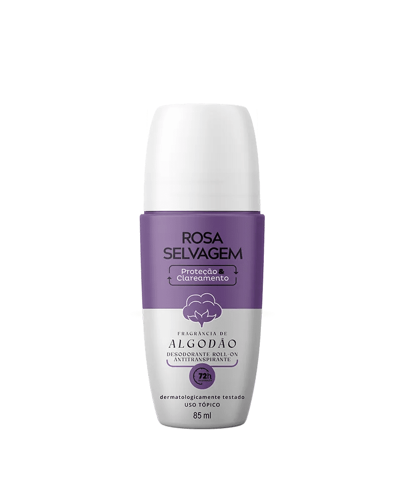 Desodorante roll-on com fragrância suave de algodão, desenvolvido para proteção prolongada contra o suor e odores, ao mesmo tempo em que ajuda no cuidado e no clareamento da pele.
