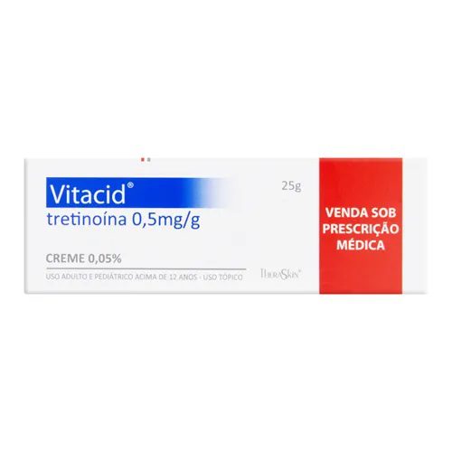 Vitacid é indicado somente para uso tópico, em adultos e pacientes acima de 12 anos. Vitacid é indicado para o tratamento de linhas de expressão, manchas e asperezas da pele facial, características do envelhecimento da pele causado pelo sol (fotoenvelhecimento) e também para o tratamento da acne vulgar (espinha), especialmente da acne leve ou de grau I, em que predominam os cravos (pontos negros).